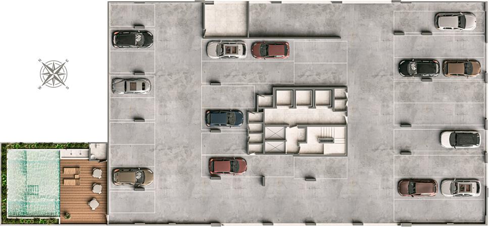 - Infraestrutura individual para recarga de veículos híbridos e elétricos (plug/tomada por conta do morador).