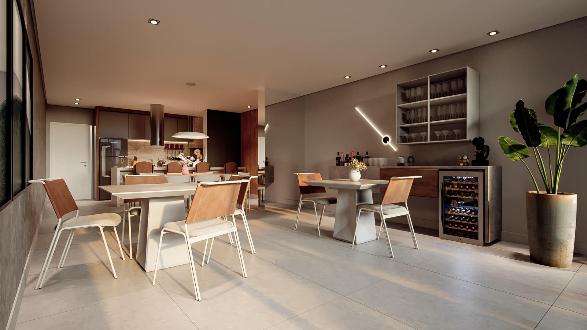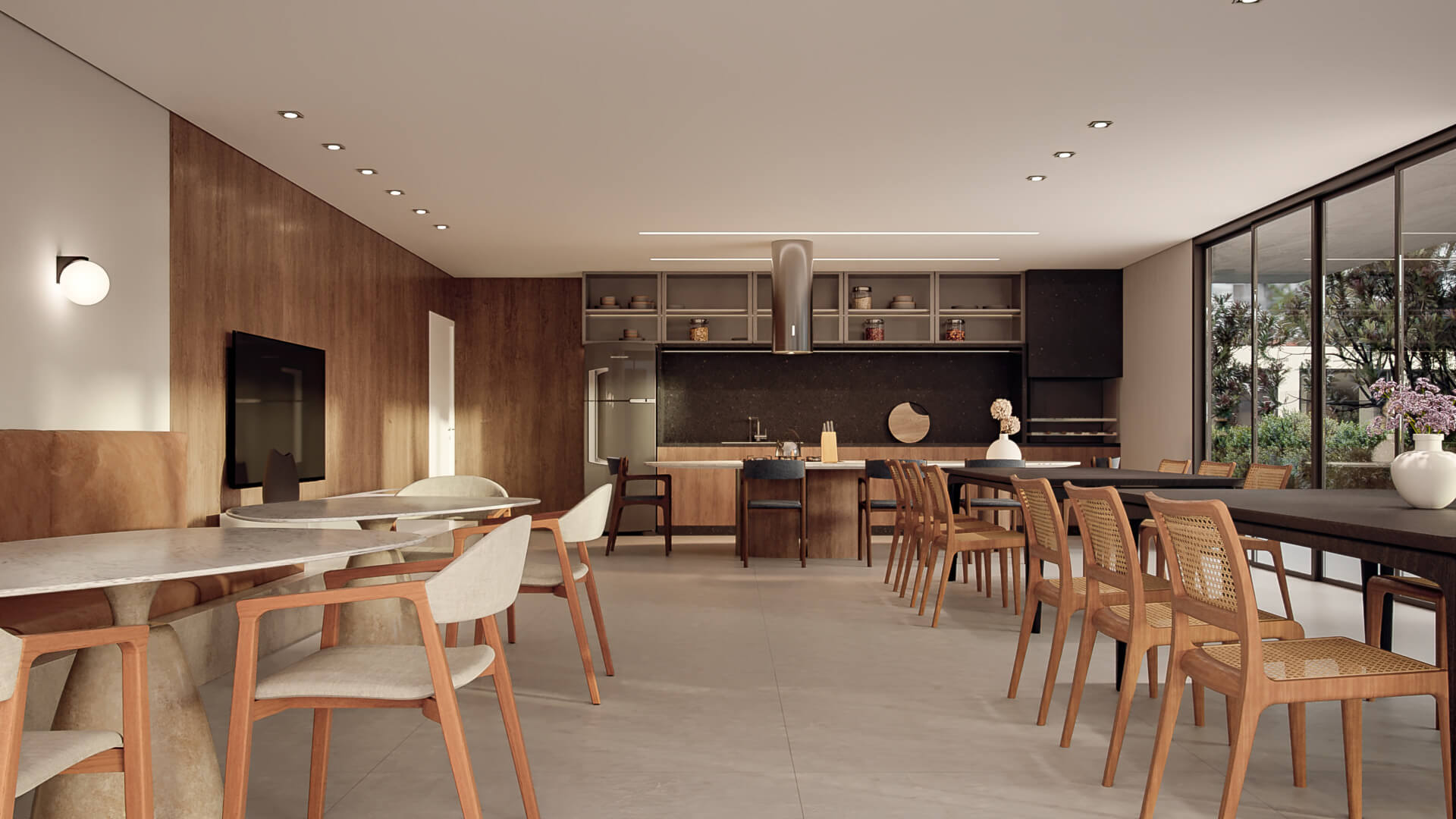 Lazer e privacidade para você com espaços de convivência mobiliados, decorados e climatizados